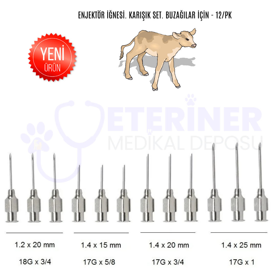 Enjektör İğnesi. Karışık Set. Buzağılar İçin - 12/pk